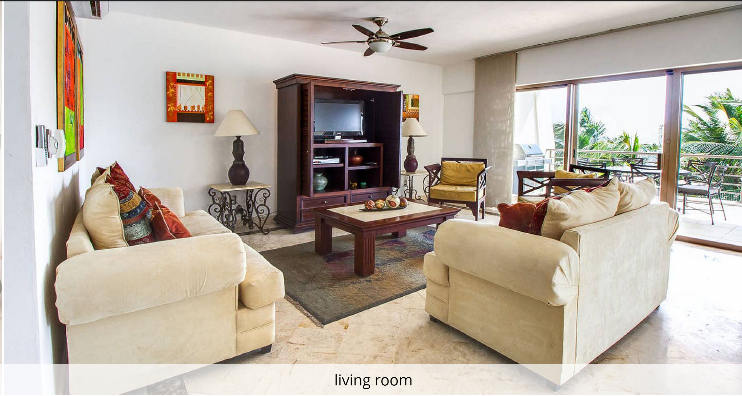 Corto Maltes 205 is a luxury ocean front 2 bedroom condo located in the heart of Playa del Carmen with a fantastic beach and perfect Caribbean Ocean to swim and relax in!. Elegant, richly-furnished Caribbean beachfront condo; 2-Bdrm, 2 Bath. Designed to appeal to the guest with caribbean style! Nestled in an intimate complex of only 15 suites in charming Playa del Carmen, Mexico. Literally steps away from world-class beaches, fine-dining and endless shopping options. Beautiful dining area features a round dining table that seats 6, a dark-wood sideboard and bar area with stools. Chandelier lighting on dimmer switch ensures elegant entertaining. Spectacular views of the stunning white coral sand beach from the private terrace that seats 4. On-site parkade with 24-hour security. Private terrace with lounge chairs and panoramic views of the azure Caribbean sea. A refined and regal Playa del Carmen vacation rental condo!