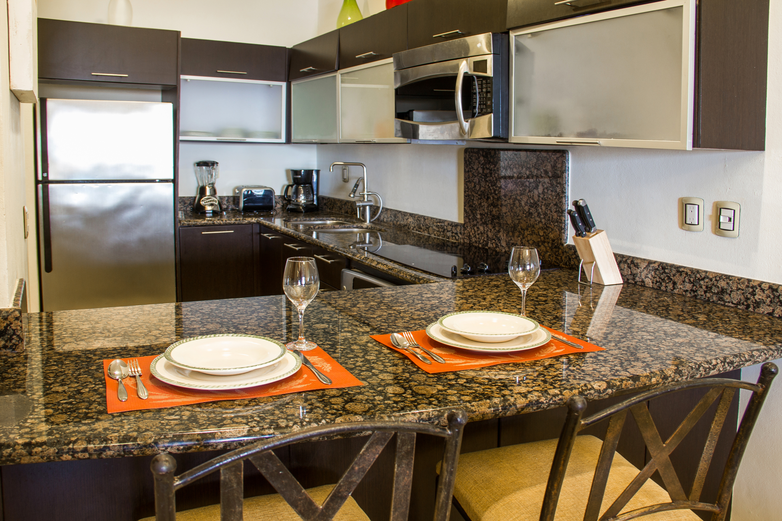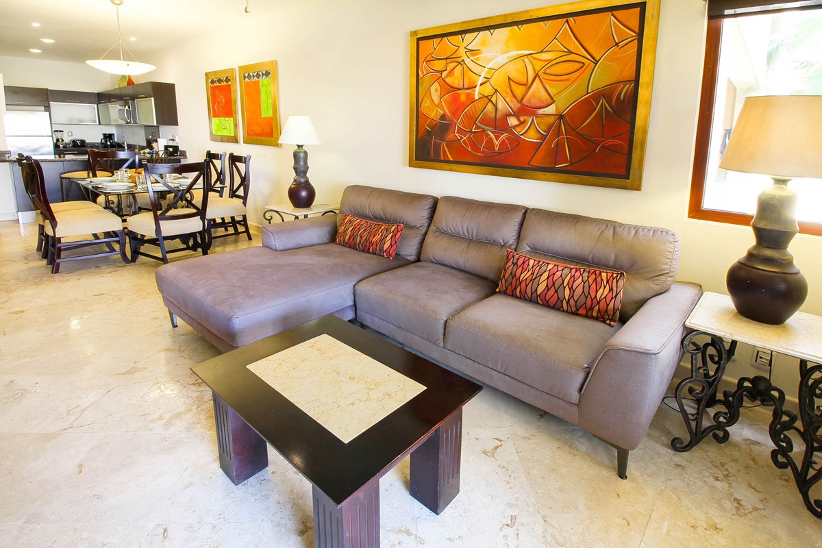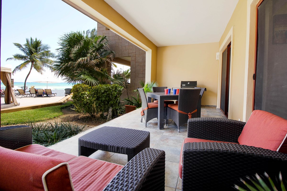 Imagine being able to spend your vacation in the perfect refuge in the middle of what makes Playa a magical place. That is Residences El Faro. This exclusive beachfront all-suite resort offers the best of both worlds; the comforts and intimacy of your own home and the unique atmosphere and services that can only be found in a high-end hotel. The perfect house, a perfect condo; Reef 102 is highlighted by beautiful marble floors, granite kitchen countertop, all appliances (including oven) and an appointment of premium entertainment electronics, Wi-Fi in common areas, infinity pool with sunken loungers and pool for children, cleaning service, concierge service, 24-hour security and beach club. The condo offers two bedrooms, two full bathrooms, and a sleeper sofa in the living room. The private terrace offering a barbecue leads to the lush tropical garden, pool and stunning ocean. (Parking Fee – $15 USD per night)