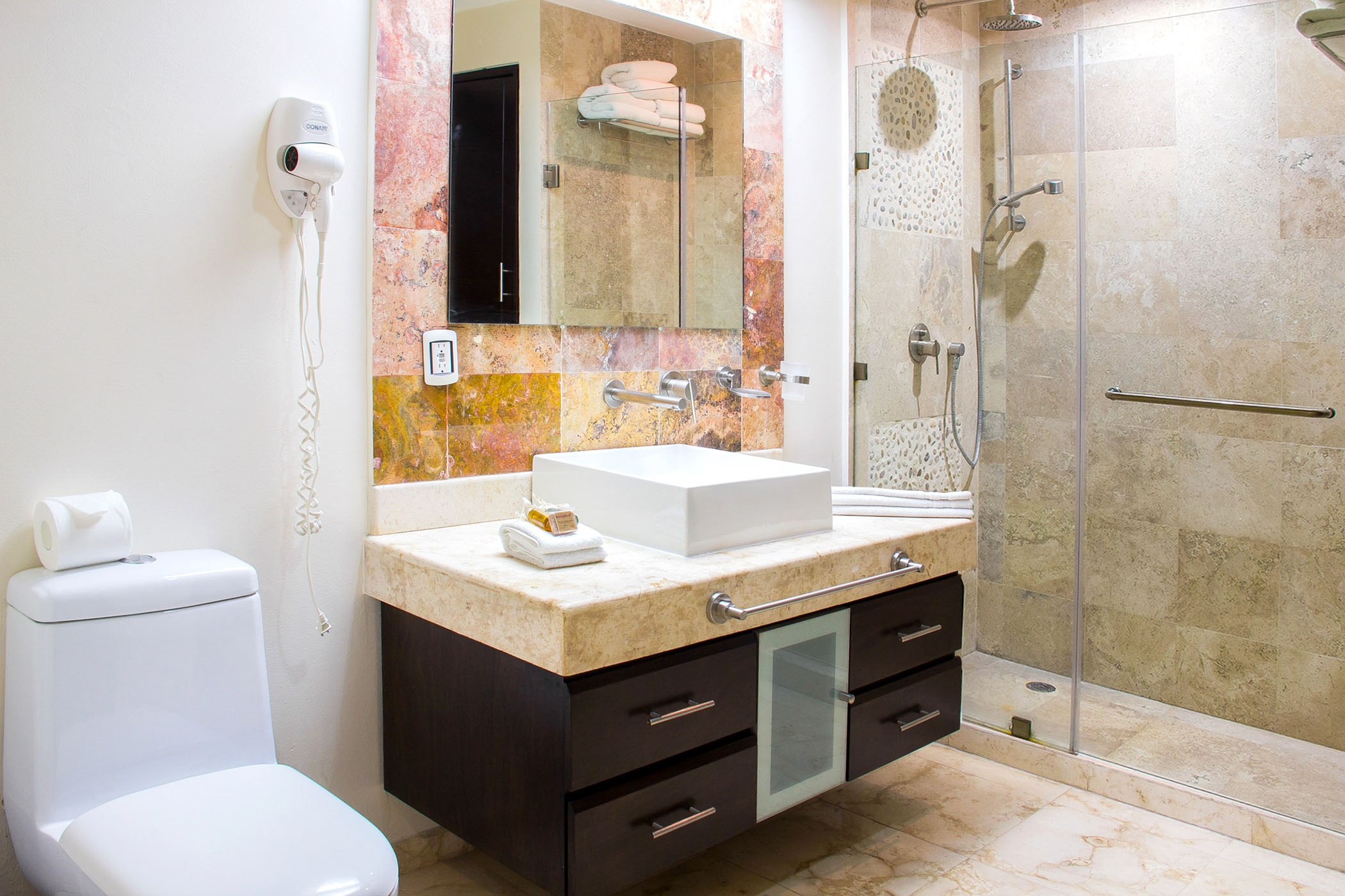 ¡Rodeado de exuberante vegetación y a pasos del mar Caribe que baña la playa de arena blanca! Ambas habitaciones incluyen mucho espacio de guardarropas y baños contiguos con duchas de lluvia para una experiencia de spa. Elegantemente amueblado con sofás de cuero marrón de lujo y comedor majestuoso para 4 personas. Cocina totalmente equipada con características modernas . Piscina infinita, y terapia de masajes, gymnasio. (Tarifa de estacionamiento: $15 USD por noche)